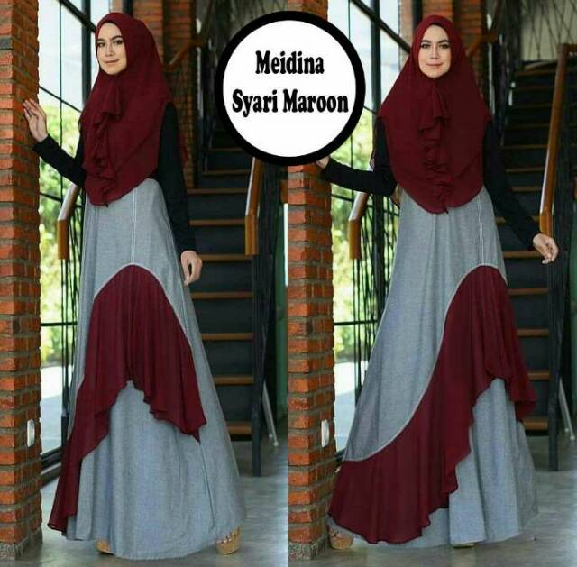 Model Baju Gamis Warna Merah Marun Ragam Muslim Sumber : ragam-muslim.com